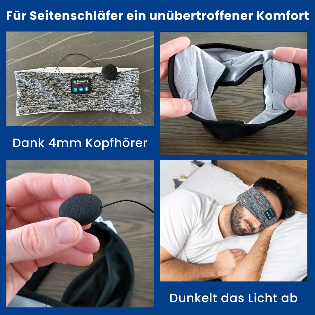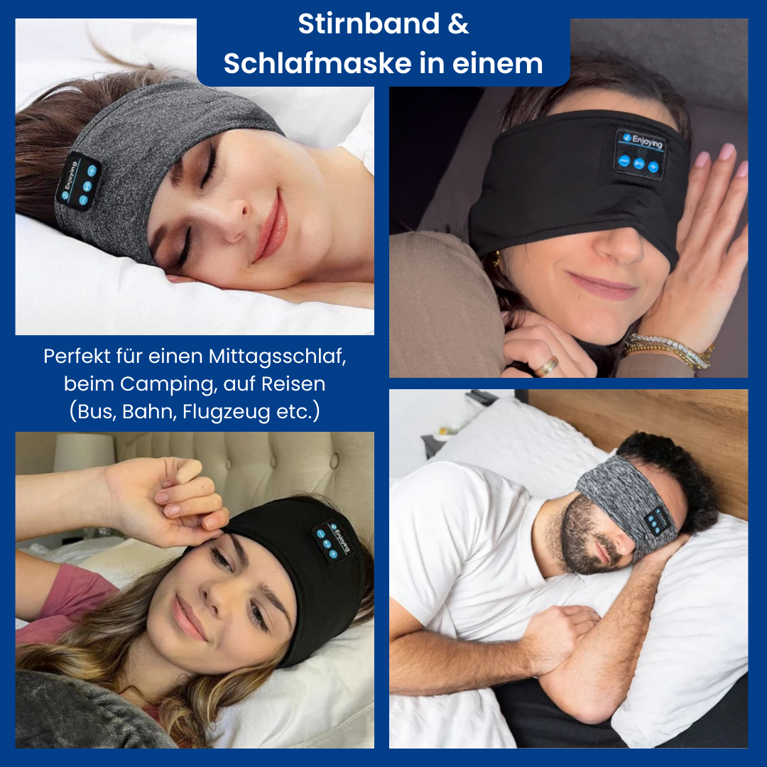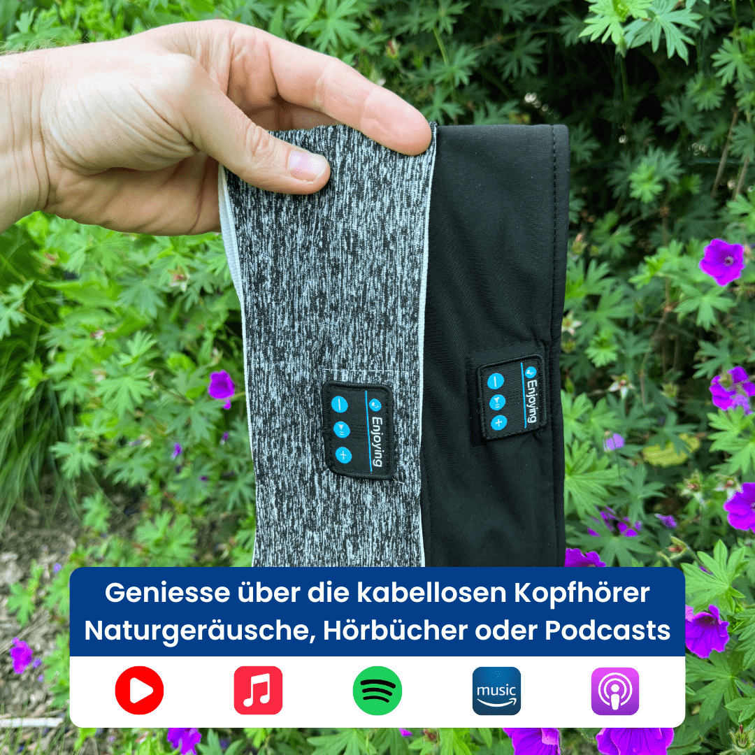 Du kannst es entweder als Stirnband mit kabellosen Kopfhörern verwenden oder als Schlafmaske, die deine Augen vollständig bedeckt.