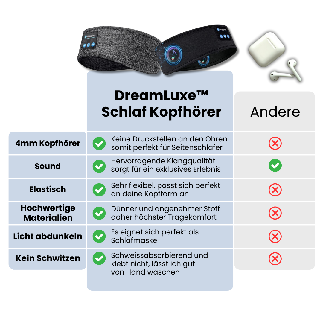 DreamLuxe™ Schlaf Kopfhörer sind ein All-in-One Paket. Sie sind ein Versprechen für einen erholsamen Schlaf.